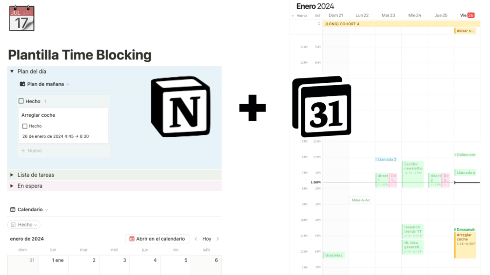Una plantilla de Notion que te ayudará a usar time blocking usando Notion Calendar.