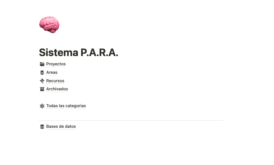 Plantilla método P.A.R.A Tiago Forte para Notion